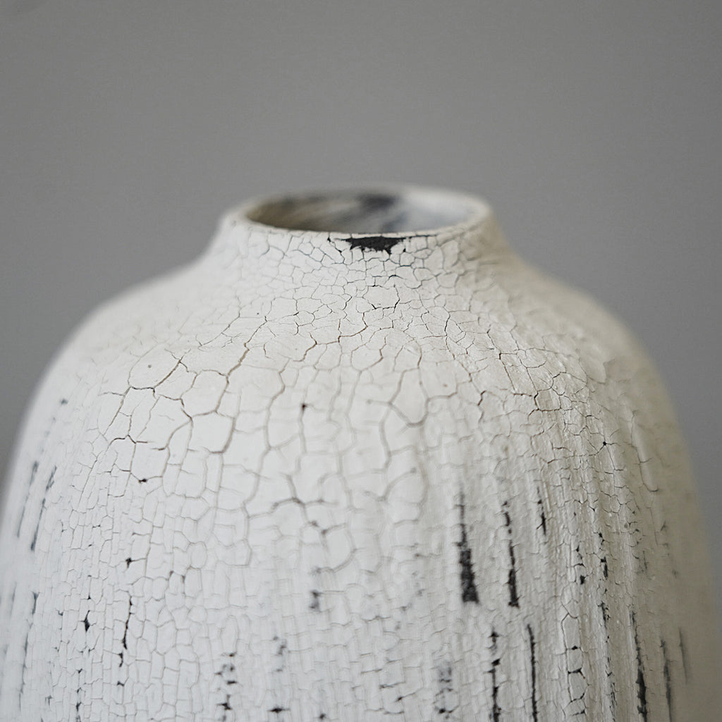 A slip is then applied and partially removed to allow the pattern to come through. The vase is then put through numerous firings to achieve the final finish. The interior is fully glazed.