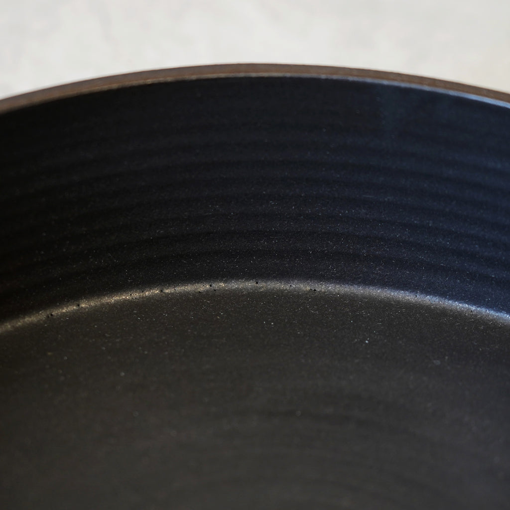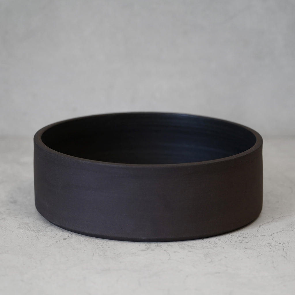 Black bowl, black stoneware clay, unglazed exterior with a matt glaze interior.